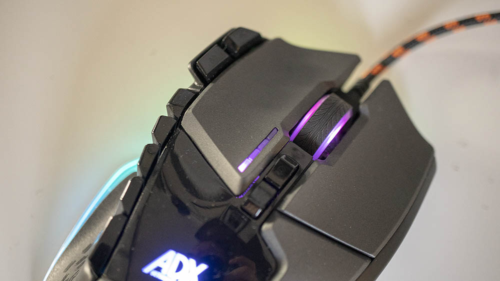 The mouse itself is wired, with a braided yellow and black fabric for protection from sharp edges of your desk. The ADX Firepower M04 is plug and play, making this very easy to setup. Everything is controlled by the mouse itself, including the up to 8,200dpi switch and RGB light setting, although this only controls the scroll wheel colour.
