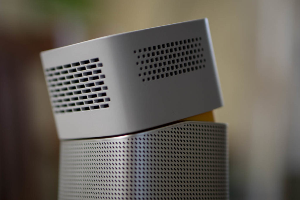 The unit is relatively small, standing at 80mm x 155mm x 80mm thought is a little on the heavier side at 708g. It comes with a carrying case, which will protect it from scratches when inside a backpack or luggage. On top you will find four buttons including the power button. You’ve got a volume source selector too. The annoying thing is the fact there’s no way of navigating the menus without the remote, so wherever you take the projector, the remote must go with it. On the side you’ve got the focusing ring which is extremely sensitive, and it took a little bit of time for me to focus the image properly.