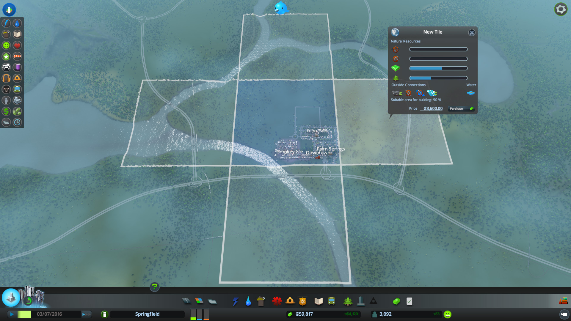 The game ares is split up even further you to purchase more land. It’s great for aiming for more than one specialisation. A great improvement on Sim City’s limited areas.