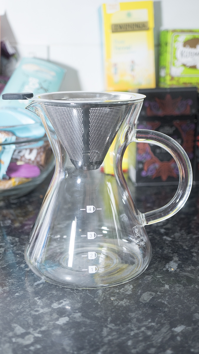 The Pour-Over Coffee Maker is essentially a jar and a siv at the top where the coffee beans go. Coffee granules are widely available for a few quid from your favourite supermarkets and they come in a variety of flavours, depending on what your pallet fancies. All you do is pour the granules into the siv, using hot water to then soak the granules through creating coffee in the jar below.