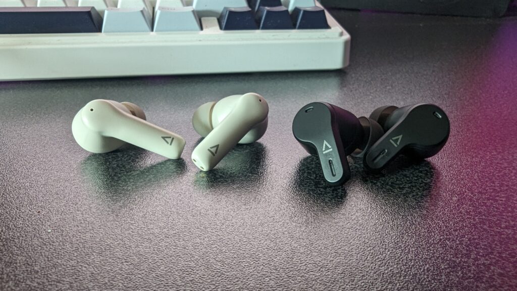 Taking the earbuds out of there respective cases, you can also see a difference in size, although this only comes in the stems of each earbud. The bulb at the top looked and felt exactly the same when wearing them. The Pro version looks a bit more refined and the Plus looks a lot more like the traditional Airpod style, especially in the off-white colour like mine are here. Apart from this though, there’s no real difference in terms of the physical nature. Both come with interchangeable buds to get that right fit and a USB Type-C cable to charge the cases. Both sets I will say look good, but I must say I do slightly prefer the smaller stem, even though the off-white colour is definitely the better colour choice out of the two. Oh, and on paper there’s an hour difference in playtime between the two. See I told you the differences were slight!