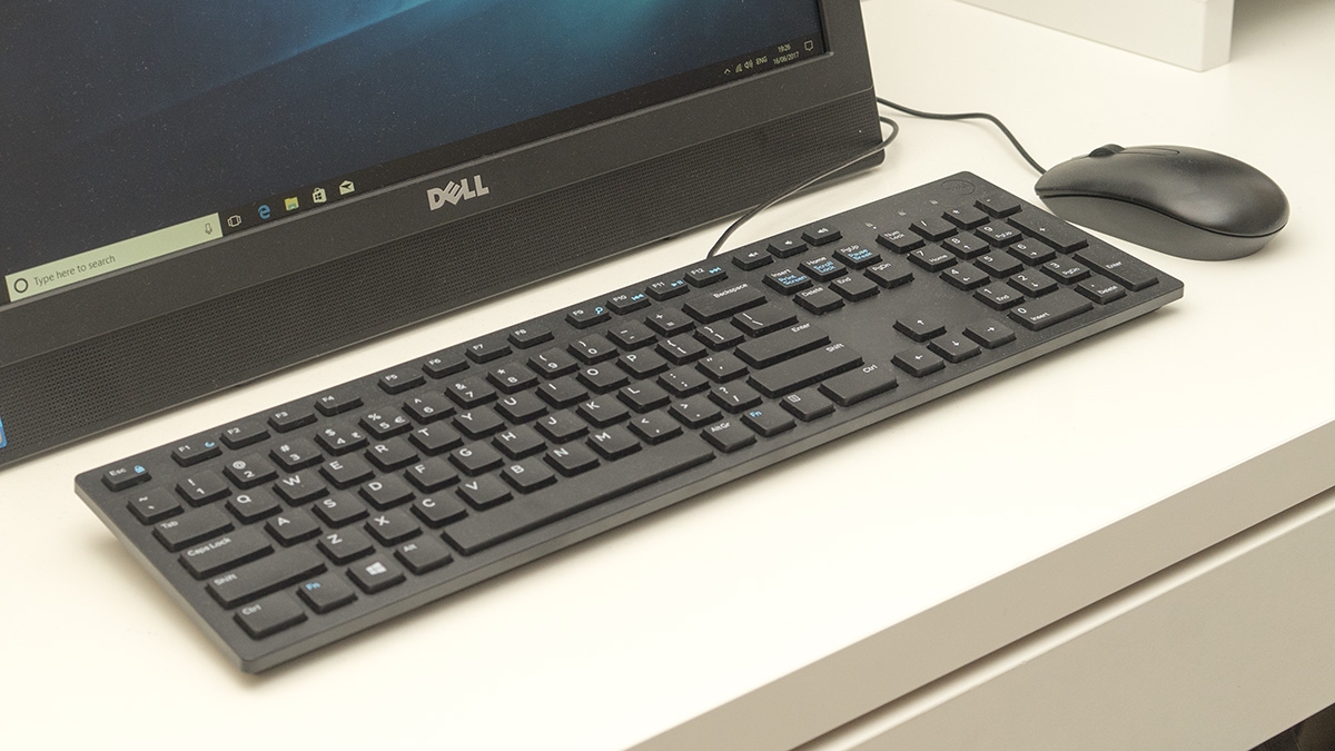 The chassis itself is covered in a plain matte black type design. There’s a built-in webcam at the top which has a small shutter for privacy, and the speakers can be found dotted across the front underneath the screen. It comes supplied with a basic wired optical mouse and a rubber-domed type keyboard which are both plug and play and ready to go from the box. The power has an external AC adapter.
