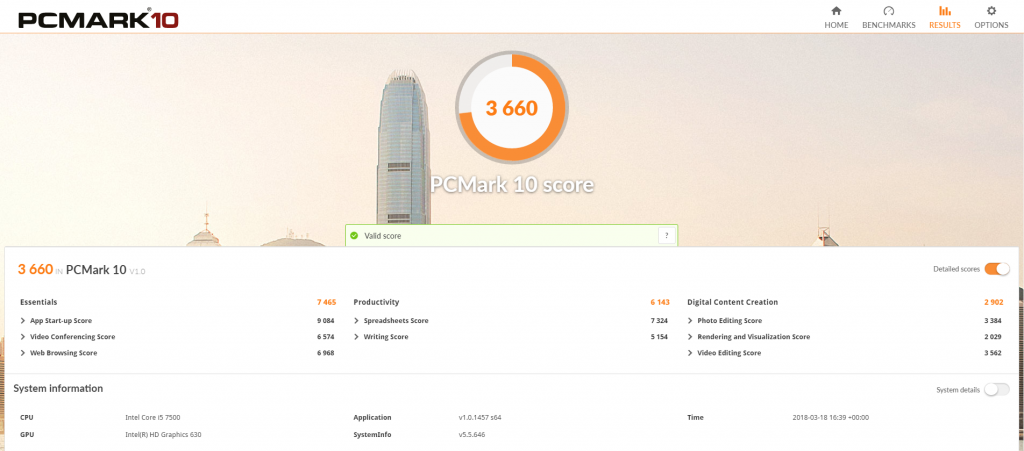 We fired up PC Mark 10 to check out those results. As a office device, it scores pretty but don’t expect to play many high end games on massive resolutions. Video editing could be done well, but don’t expect render times to be spectacular.