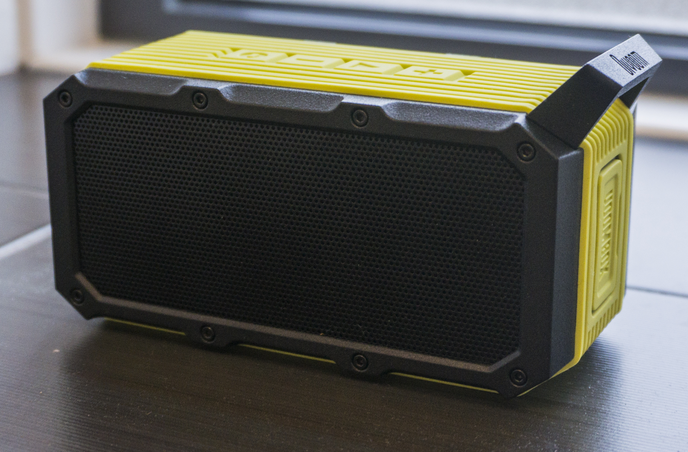 It has four buttons on the top for volume, power and playback. The side door is covering a USB slot and 3.5mm jack input for using wired connections from a laptop or MP3 player.