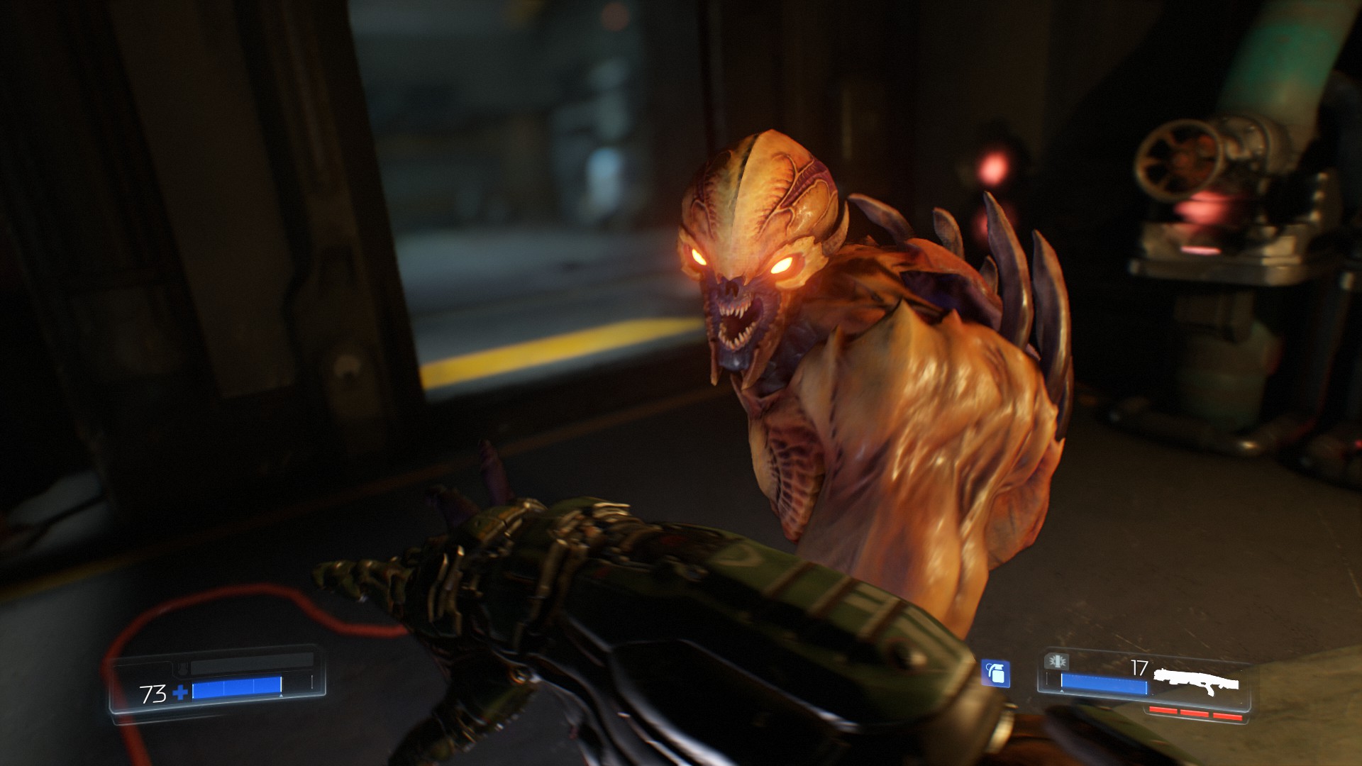 Doom’s violence, of blood and guts gibs flying from enemy stomachs also come in the form of Glory Kills. These can be activated once you have stunned an enemy with a swift melee attack. You gain some potential rewards for getting kills such as health and ammo but for a glory kill you’re always given an influx of health. This gives you a want to be in the centre of the fray all the time, even if you are on a very small percentage of health. It incentivized you to be daring rather than that cautious guy in the corner. +