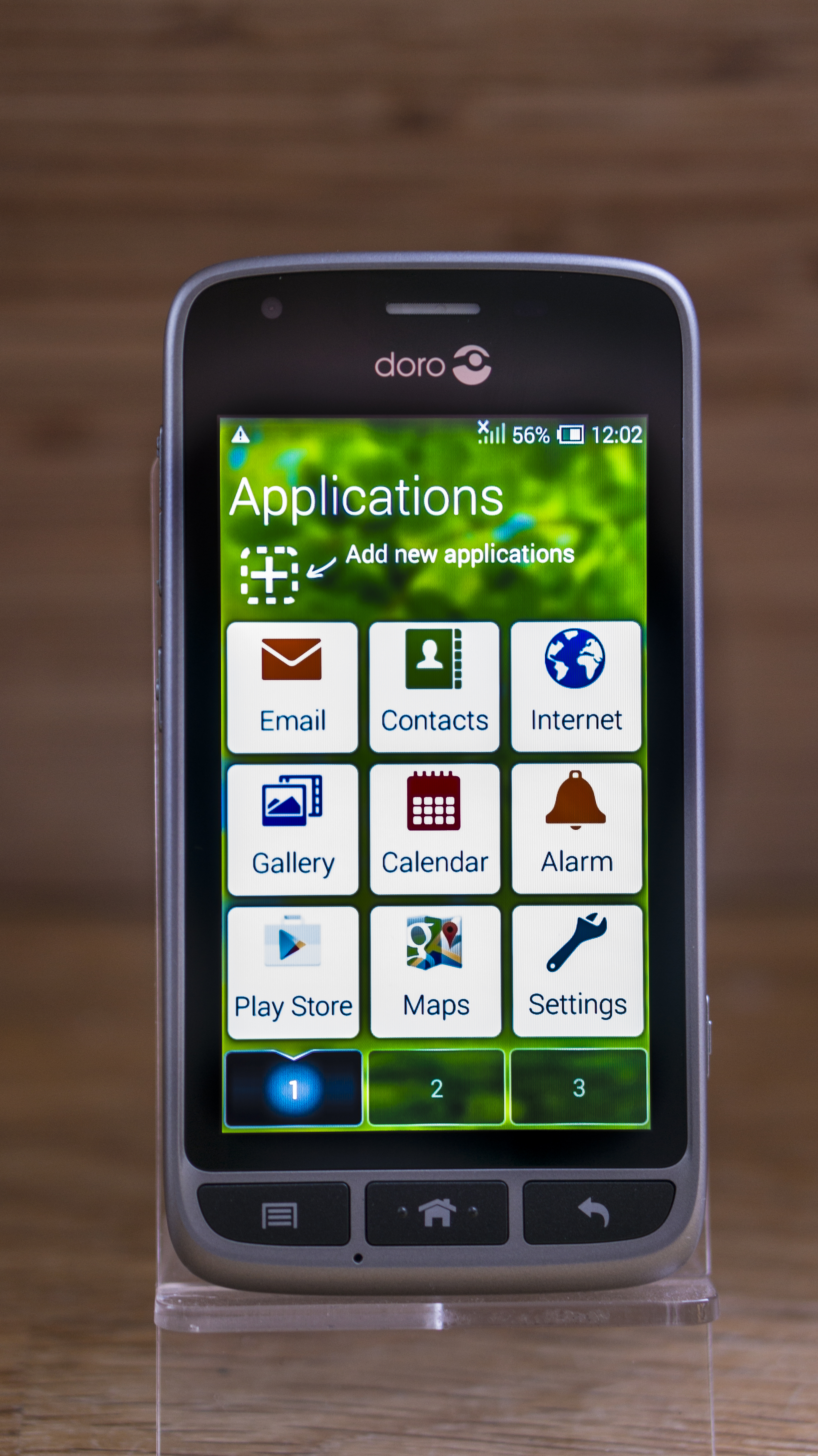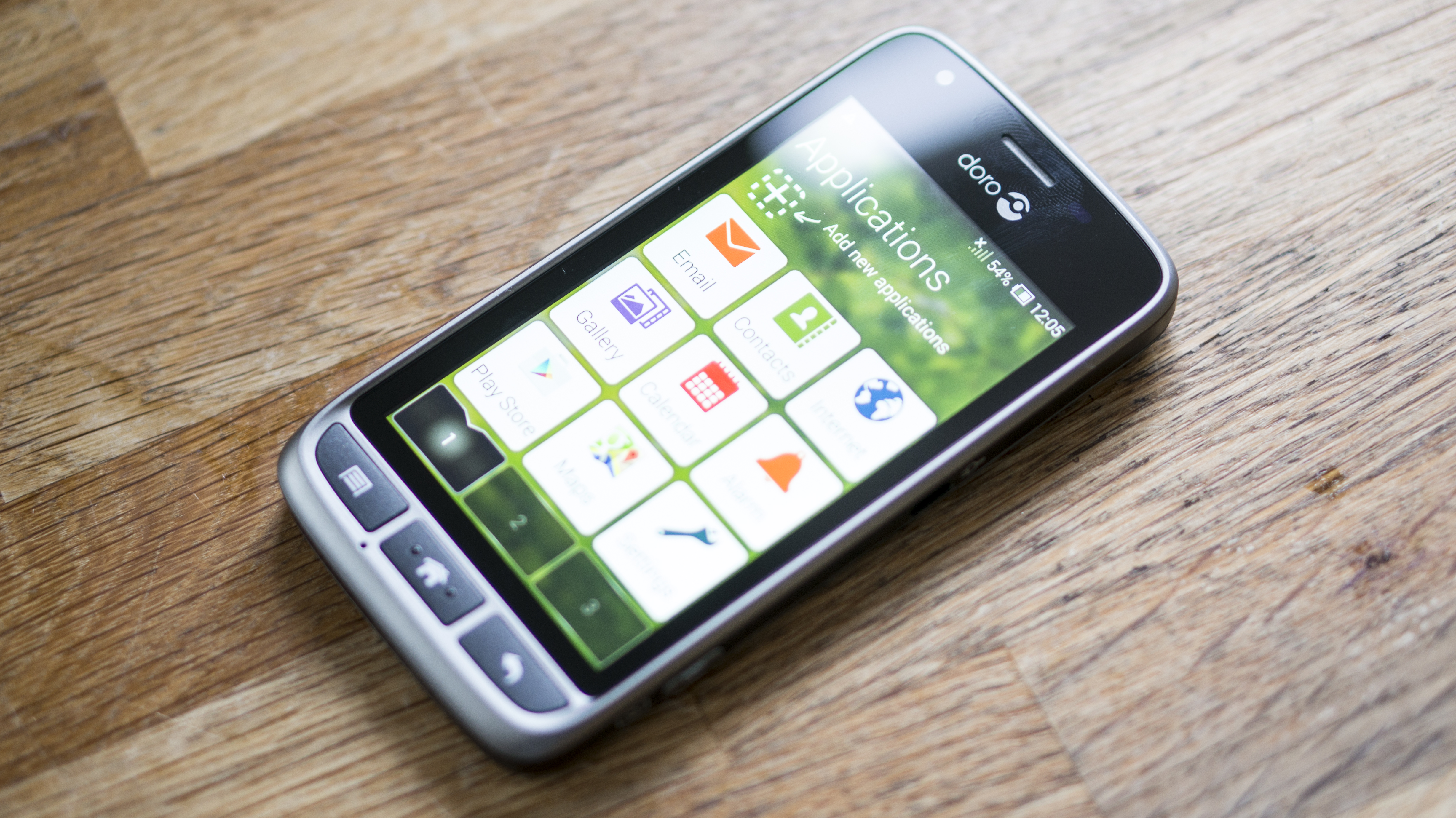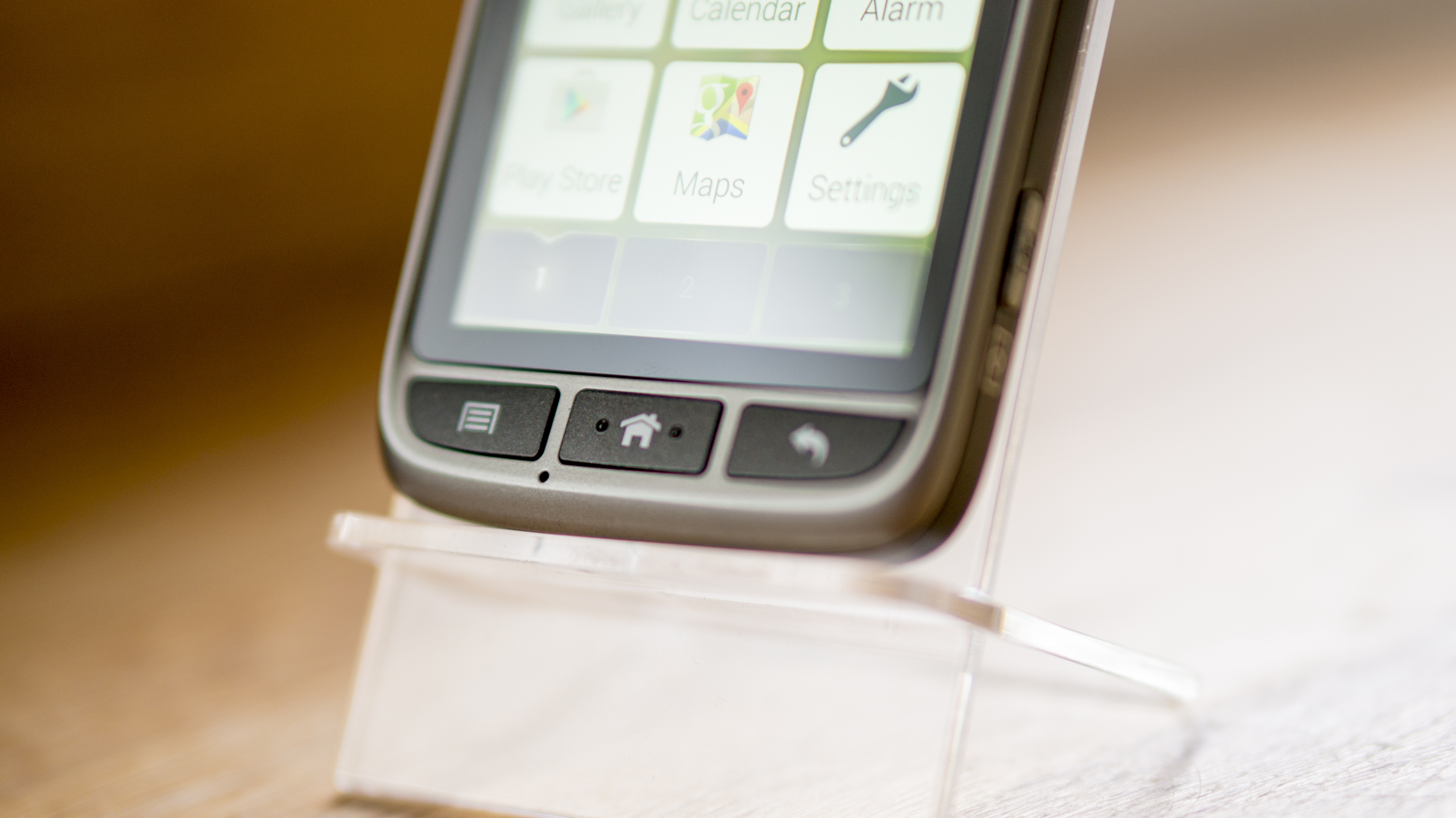 There are three buttons at the bottom of the screen which light up and are very clear to use. Doro has used a rubber finish, which makes them very easy to press. They represent a menu button, a home button and a back button.