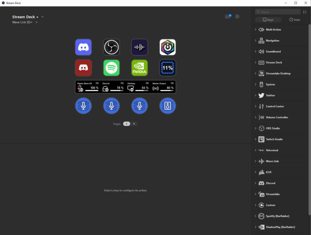 So let’s talk about the Stream Deck Plus first. It follows suit of its older siblings, retaining the eight physical LCD button screens that can be programmed to various functions on your desktop. The buttons are nice though they do feel a little squishy when pressed. The standout feature over other Stream Deck products though is the inclusion of four dials at the bottom and touch bar, of which can be directly linked to your Wave Link software, or used as independent dials. They do rotate in increments and have a satisfying click to them when rotating. Now this is what Elgato wanted to point out to me in this regard over the GoXLR. With the GoXLR, you can use virtual audio inputs that can be assigned to the physical sliders on the mixer. Here with the Elgato Stream Deck Plus, you can use the Wave Link audio software, to install multiple virtual audio inputs onto your desktop, assign them a slot inside the Wave Link software, and then tell the Stream Deck Plus which dial you would like to use for which audio input. A bit of a mouthful that, but in reality, it’s actually a very simple process to set everything up.