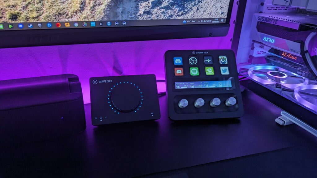 Look, the level of customisation here on the Stream Deck Plus is unprecedented. And there are so many ways that this gear can be used, it’s not just for live streamers! If you have favourite macros set up for Photoshop or Premiere Pro for example, you can stick them in there and then add custom images or text to the buttons so you can recognise them with a glance. If you want to start your favourite audio track you can with the press of a button. If you want to open your web browser and go to a specific page, say some kind of news website or social media platform, you can set that up as a hotkey. It’s just such a fantastic piece of gear that I for one absolutely love. It’s got a stand which is fixed to the Stream Deck, but it angles the interface very nicely towards you, making it easy to see the functions in your peripheral vision. All it requires too is a single USB cable running to your desktop, and as I said at the start, I am also running the Wave XLR too for my microphone, and that also requires a USB cable to your desktop too. I don’t use any of the controls on my Wave XLR anymore, I do everything on the Stream Deck Plus, which does raise another question for Elgato to think about. What if the Stream Deck Plus could also act as an audio interface and had its own physical inputs on there like an XLR for a microphone and a 3.5mm aux input on there for audio? It would completely negate the Wave XLR, making gaming setups even more compact. Now that, I’d like to see.
