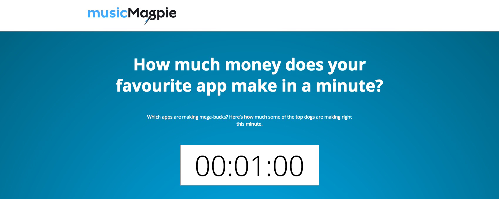 There is a pretty cool interactive page on the MusicMagpie site, where you can see how much money the current top 20 apps generate per second. Check it out here: http://www.musicmagpie.co.uk/money-apps-make-per-minute/