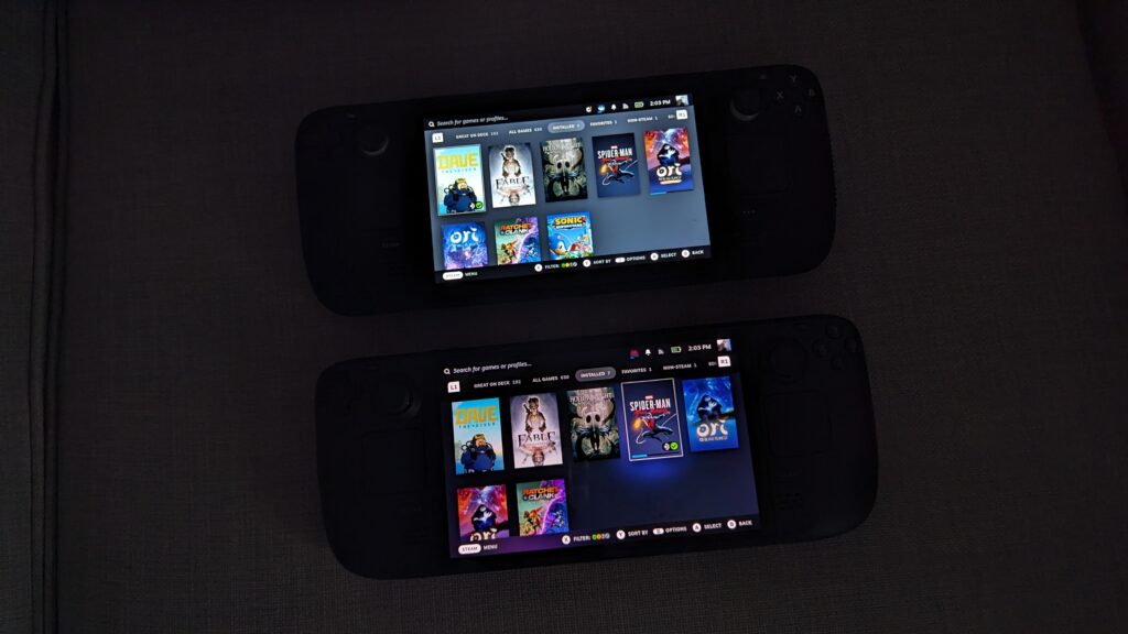 When it came to gaming though, it was pretty obvious most of the time the differences between the two but there were instances, like with Miles Morales for example, that it just didn’t make much of a difference during certain scenes, especially when zipping around New York. However, if you’re playing some Ori and the Will of the Wisps? My gosh, the inky blacks of the Steam Deck Oled just made that game shine! Hollow Knight too, due to the nature of the game, playing it on the Oled made it look a lot nicer, and when I showed some friends the difference between the two screens, their feedback was the Oled screen made the games feel like they’ve come to life, whereas the original Deck screen made the games look very flat and dead. Even older titles like Fable Anniversary which by the way if you haven’t played it is a fantastic game by Lionhead Studios (RIP) and the Oled version made Bowerstone look a lot more vivid and bright and colourful, where the backlight bleed almost hurt it a bit from the original Steam Deck screen. Let us know in the comments if there’s any other games on Steam that you would like to see on the Steam Deck Oled screen and we’ll try and get the video made for you. As I said, I just picked a small handful of games for this video as a demonstration.