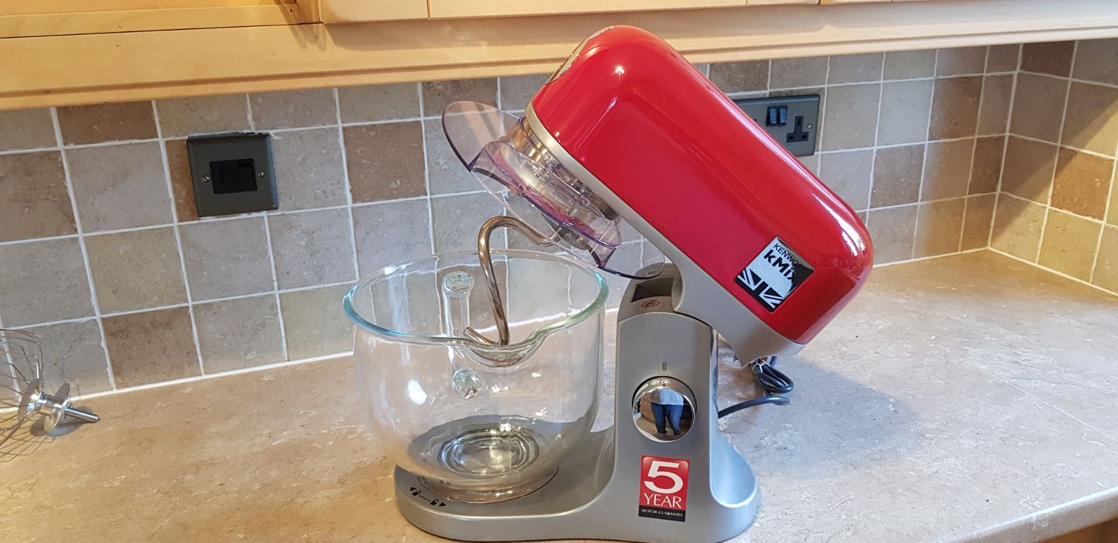 The mixer does come in four colours being red, black, cream and what looks like grey on the box but I could be wrong. We were sent the …. one and it looks great. You can expect the same level of quality as the last Kenwood mixer we took a look at too.