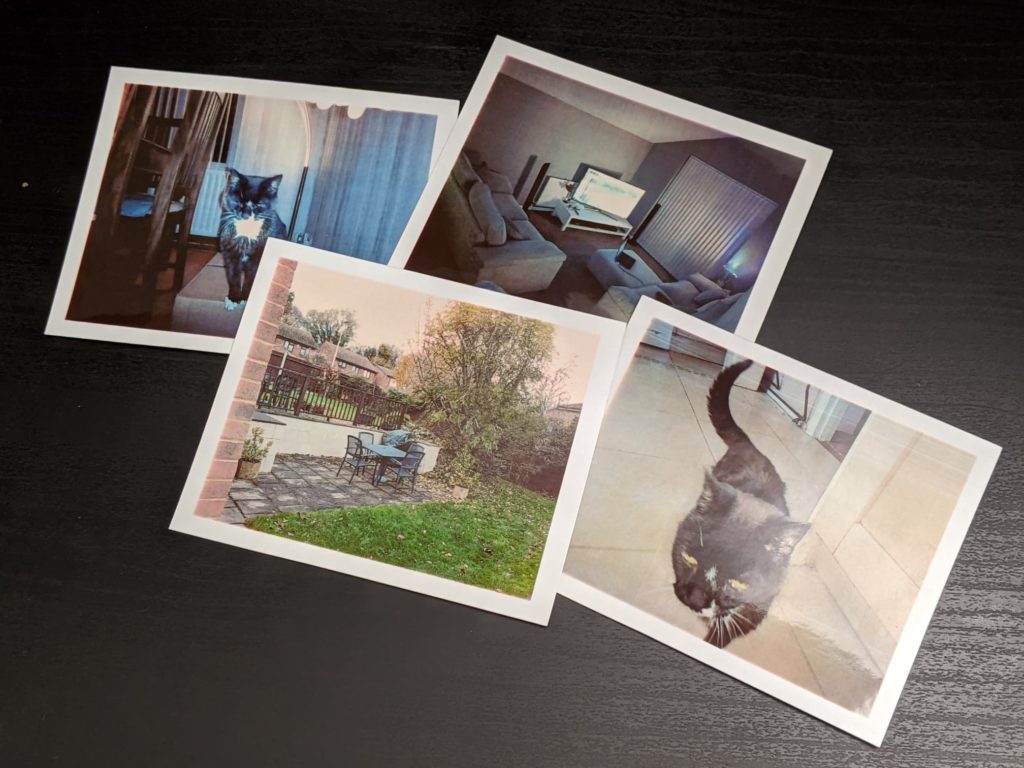 Overall quality of the images printed aren’t too bad. They come out of the printer on a 3.25-inch x 4.5-inch glossy paper which has a sticky back for scrapbooking. There is also a quarter-inch white border giving your images that classic Polaroid feeling. Of course, print quality isn’t the best as you could imagine, but the tradeoff of having a photo within a few seconds in your hand is pretty cool. It beats the time it would take somewhere like Boots to print your images, although their quality would be much higher.