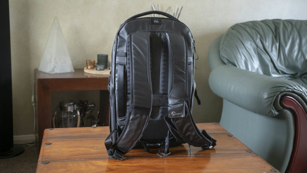 The whole thing is made from a water-resistant nylon so don’t be afraid if you get caught out on a rainy day. Easily the most frustrating feature with this backpack are the annoying strap clips. I wish Lowepro would have used some kind of quick release clip, but I can see why they went with this system. It’s to keep them flush against the bag. They’re alright if the straps are loose, but when you’ve linked a tripod to the side, it causes tension and can be very tight on the clip itself, so removing the strap just causes issues.
