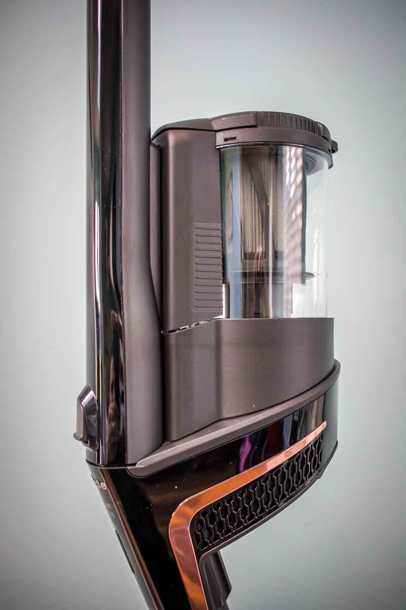 As for performance, the suction is exceptional and I’ve not experienced anything like it before. It was so good that I questioned the last time I vacuumed upstairs. Weekly is the answer but the amount of dirt and hair it picked up, you would have thought I skipped the last few weeks. There is a very noticeable difference in speed/sound between the three different suction settings but that doesn’t relate as much in performance, as even on low suction, I could see the same pieces of dirt get sucked up. With that fantastic performance, comes its first limitation, the dust bag or container. After hoovering upstairs (standard 4 bed, landing, all carpets) the container was full, so full in fact that I couldn’t actually empty the container without getting a pencil in there to ease it out. In hindsight, I should have monitored it and emptied it halfway through but that would have annoyed me.