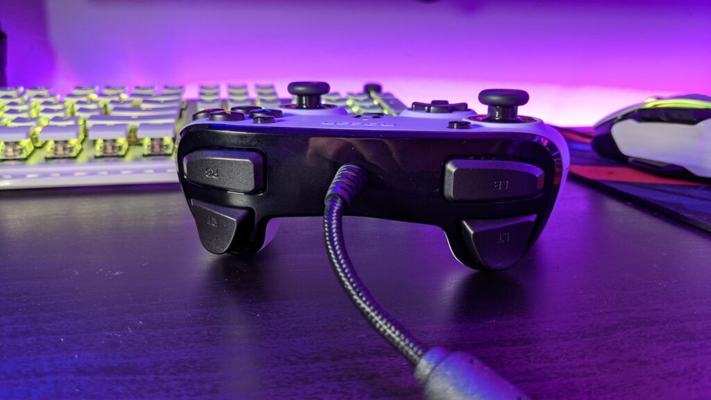 The Nacon Pro Compact uses a typical USB Type-A connection on the end of a 3-metre braided cable. It feels more than enough to play at your desk, even if your PC is on the floor, and depending on the size of your living room of course and how long you sit away from your TV, you could get away with it. There is, unfortunately, no wireless option that I can see on the Nacon website, so it might come in the future, but I can’t say for sure.