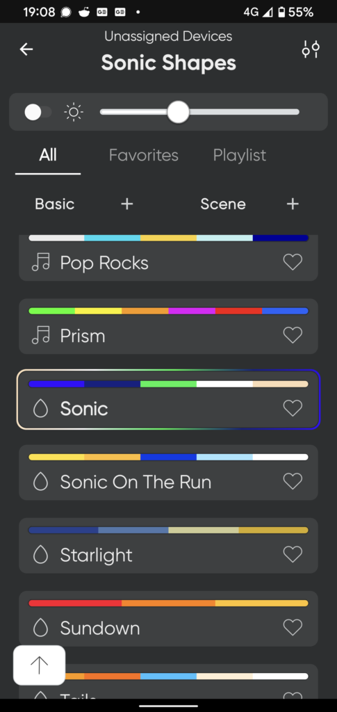 But once that was done, I had a Sonic Nanoleaf Shapes face and it was all good to go. And you know what? It looks wicked. Much bigger than I was expecting looking at press images and the image on the box. It’s super bright too, and was more than enough to light some ambience in my living room, and it wasn’t even on the wall, it was on my review desk. The app again is feature-rich with different scenes, so if you’re bored with Sonic’s face you can match it to your other Nanoleaf panels in a big scene.