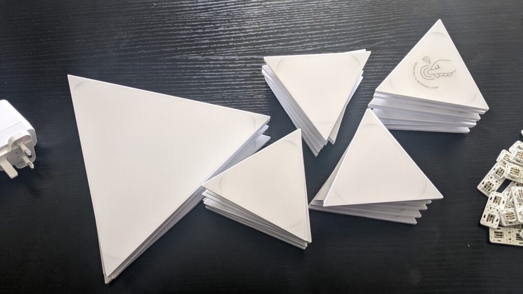 The kit is made up of 32 different light panels, more specifically their triangle panels, of which there is a mixture of four big and 28 small triangle panels. They connect to each other as you would imagine, using the small plastic connectors, and include sticky adhesive pads to stick to your wall. There’s also the usual controller to set up your Nanoleaf light panels, and of course, if you wanted Sonic to be a different colour, like when he goes into his Super Sonic form and turns yellow, you can.