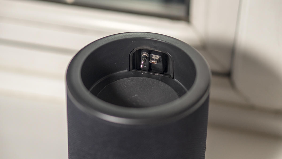 There’s an audio jack on the back which will passthrough the Amazon Echo Dot to the Vaux speaker. You can connect your mobile phone or another audio device directly into the speaker. Take note that if you do this, you will cut out all sound from the Dot itself so no more Alexa until the audio device is unplugged.