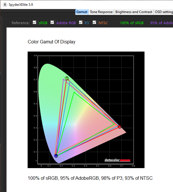 Before I go into my testing results I just want to say wow. This Philips monitor is probably the best screen we’ve had on the table ever. I mean the results achieved here were nigh-on-perfect. Not quite 100% and you’ll see but my goodness it’s come close. Anyway, enough of me fan girling over the screen, let’s talk about some results. The Colour gamuts came back strong with 100% sRGB, 95% AdobeRGB, 98% P3 and finally 93% NTCS colour gamuts. I mean already just look at those numbers. If we push into colour accuracy then again be shocked because this EVNIA screen hit an average of 0.73 on a Delta-E and a maximum of 1.72. So even that maximum Delta-E is pretty much spot on compared to some screens we’ve seen in the past.