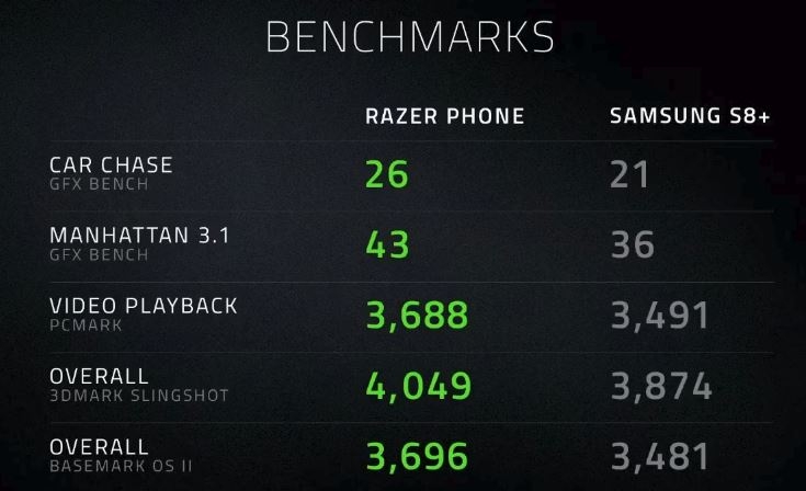 The phone has been built through a partnership with Qualcomm and is sporting an 835 Snapdragon processor. This has been paired with a whopping 8GB RAM. They seemed to bash Samsung’s S8 a little here by showing off their new benchmarking performance stats. You can see them below.