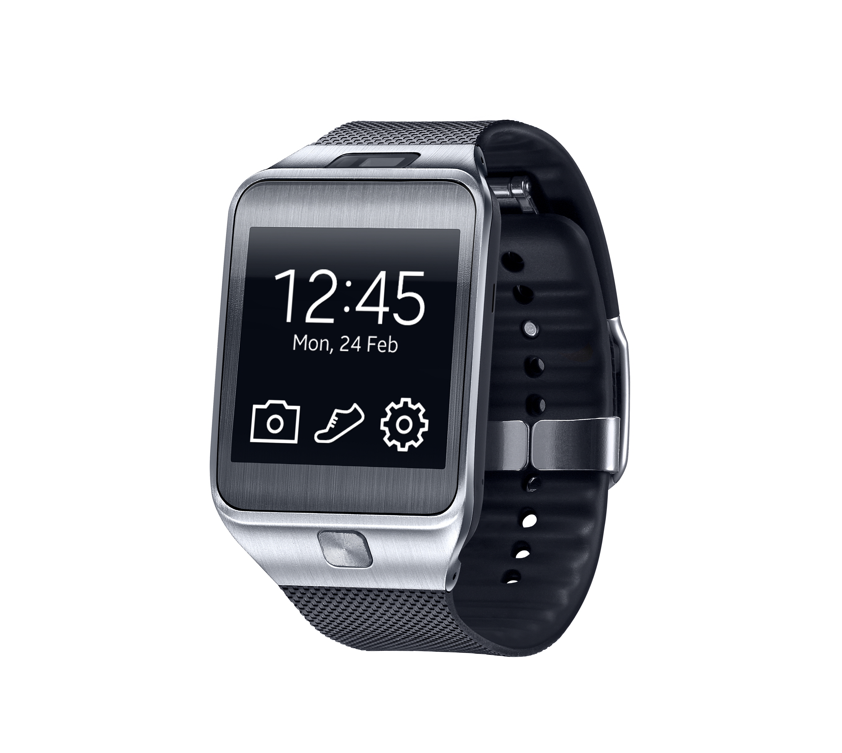 The new Gear 2 is running Samsung’s Tizen-based operating system. Its design has had somewhat of an overhaul. No one wants to wear an ugly timepiece. There is no chance of feeling embarrassed wearing this. There is a camera embedded in the watch face itself sitting alongside an infra-red blaster. There is no longer a huge power button on the side of the watch.
