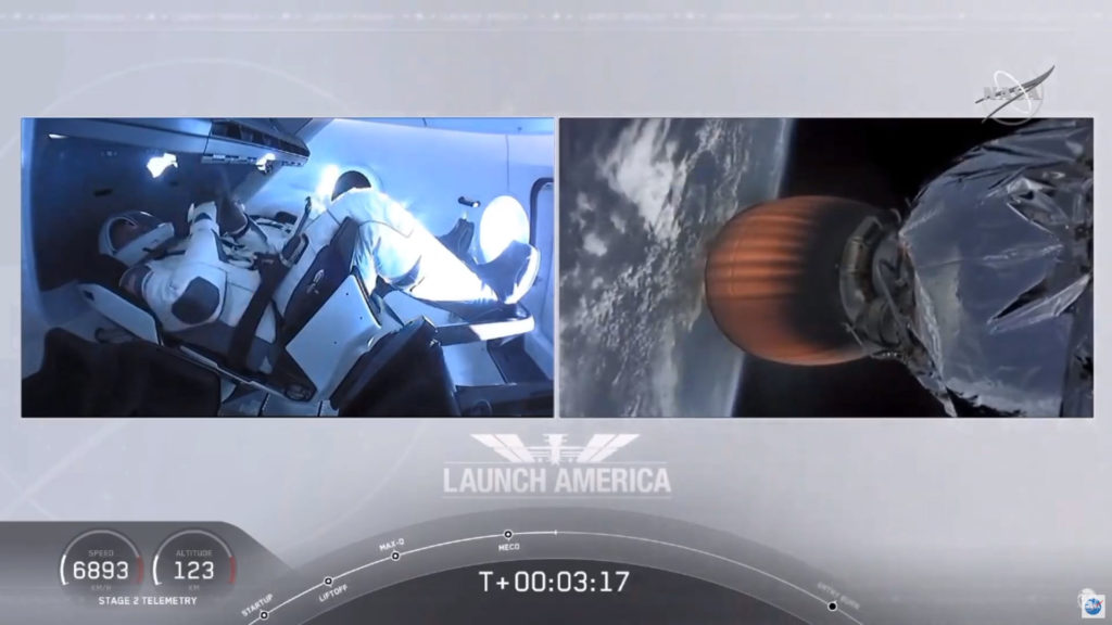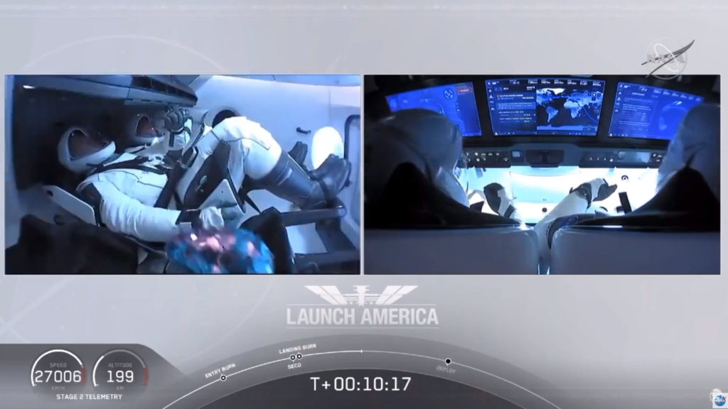 Inside the Dragon captule are astronauts Doug Hurley and Bob Behnken. Everything went really well, with all stages of pre-launch happening on time.