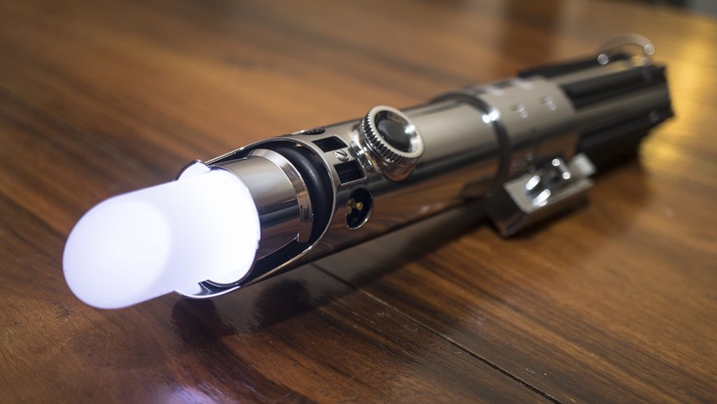 The game comes in two parts, the Lenovo Mirage headset which we’ve spoken about briefly, a lightsaber controller styled the same as Luke Skywalker’s iconic hilt, and then there’s a floor sensor which tracks your movements and the projections on screen. The blade doesn’t fully extend on the saber, instead swapping this for a little rubber nib, but the whole device feels chunky enough to gain some immersion.