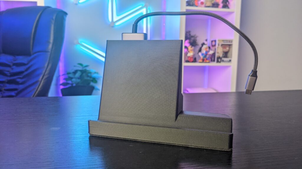 Also, I’d like to talk about the price too. Now as I said, these are retailing at £30.50 which I can tell you now will be cheaper than the official Steam Deck dock price. Not that I know the price of the official one, but I’m guessing £99.99 maybe £80 if we’re lucky. £50-60 for the USB hub, power delivery stuff, ethernet and all that kind of thing, and feature sets of similar USB-C dongles on the internet, and then Steam chucking on a premium because you’re buying the ‘Official Steam Deck Dock’ Of course, I’m speculating a bit here, it could be super surprising and be cheaper than that, but time will tell. Now, my dongle that I use with my Steam Deck cost me roughly £20, I can’t quite remember the full retail price. So for £50, I’ve got myself the dongle I wanted, and an extremely neat looking stand which I for one think is fantastic. And the Docks are available now on the Veetec3D Etsy shop. And better still, We’ve got a 10% discount offer at the link in the description too, so make sure you check that out if you want a dock for your newly purchased Steam Deck.