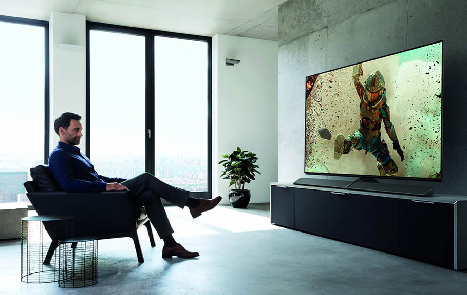 This has to be one of the most colourful televisions on this list. I know manufacturers like to call their tech their own names for marketing reasons, but the Quantum Colour from Samsung (which is the Q in their model numbers) is definitely one of the best. The Q9F can hit up to 2000 nits in brightness and it’s powered by HDR10+ which is insane. There’s also something called Ambient Mode which in a nutshell, blends your television into your wall, making it look as if nothing is there all together. Lastly, there’s one cable that comes from the screen and plugs straight into the Connect Box which then takes all of your inputs. A clutter free living space for all. It’s available in flat or curved.