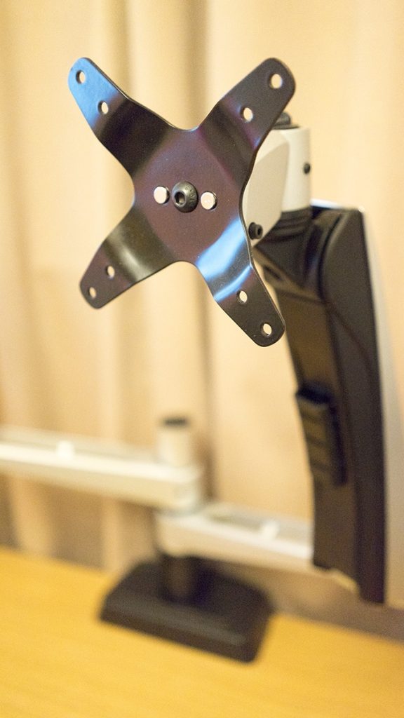 The base attaches to the desk rather easily, with two pressure plates that screw to the rear of the desk so it hooks over. The arms attach together with ease, without the need for attaching screws or fiddling with little allen keys. You’re up in about 15 minutes from when you work out which arm goes where.