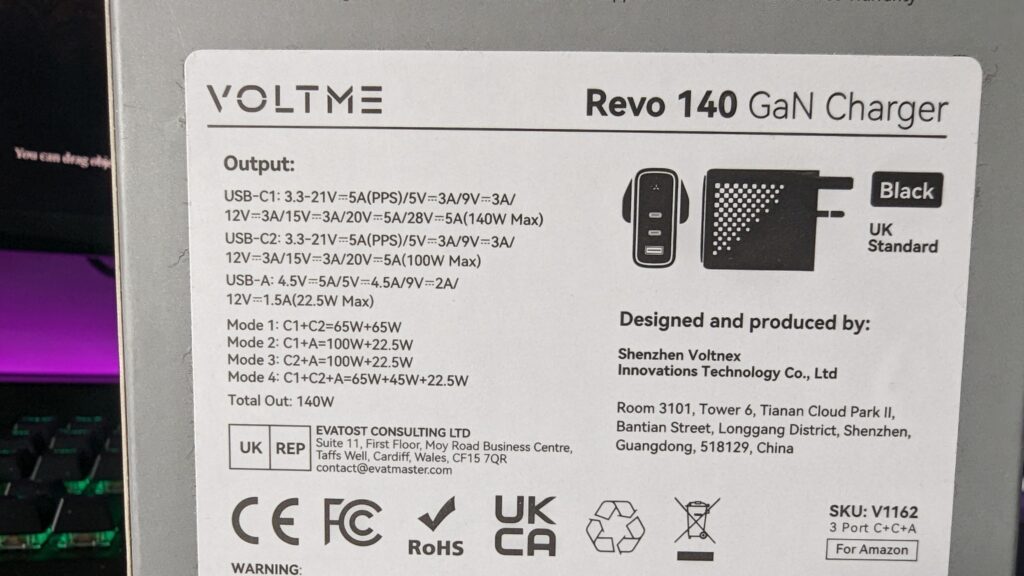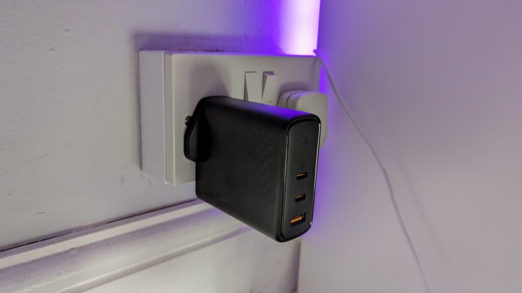This is the Voltme Revo 140, a chunky but powerful and robust USB charger that plugs straight into your wall. It’s capable of a maximum charge of 140 watts,